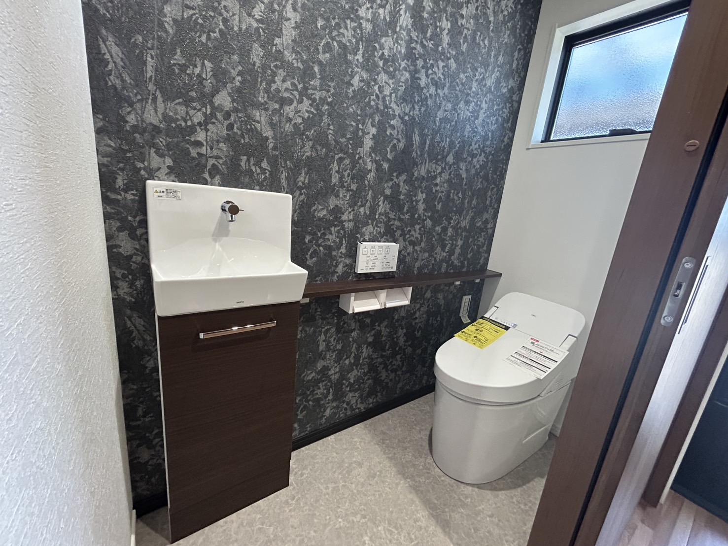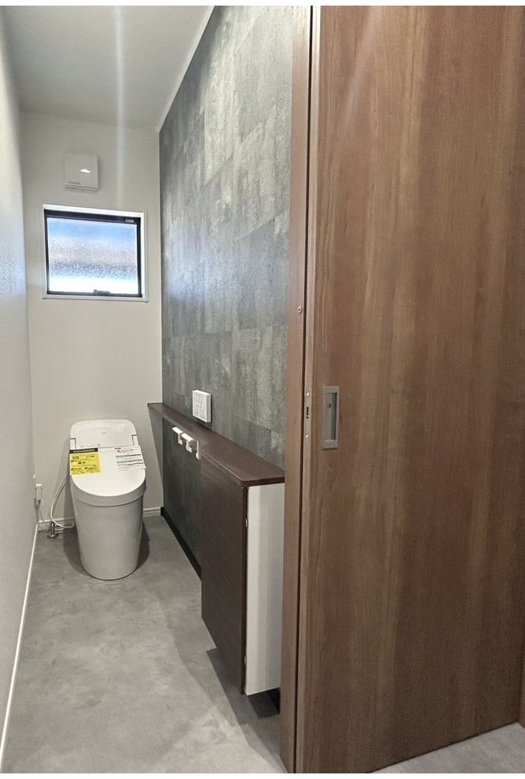 平屋であってもトイレを2個設置し、とっても幅広な洗面台を設置することで朝の混雑を解消いたしました。