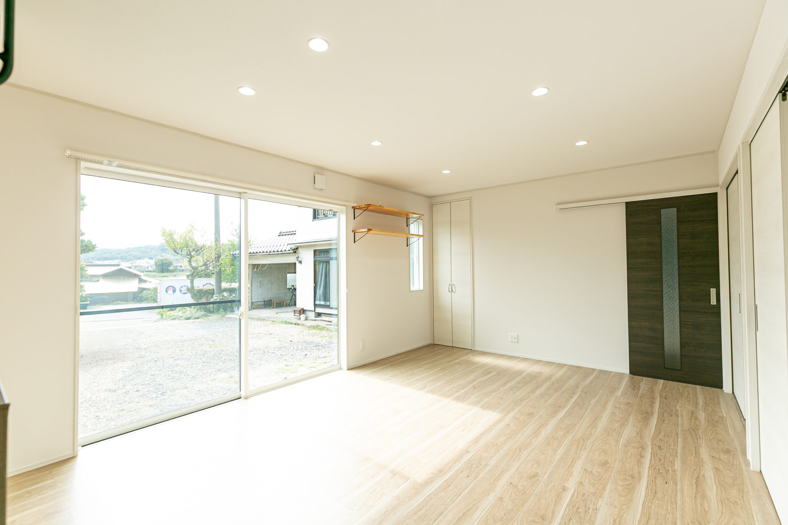 リビングの掃き出しサッシには幅256㎝とサイズの大きいものを採用。南側から降り注ぐ日光は圧巻です。