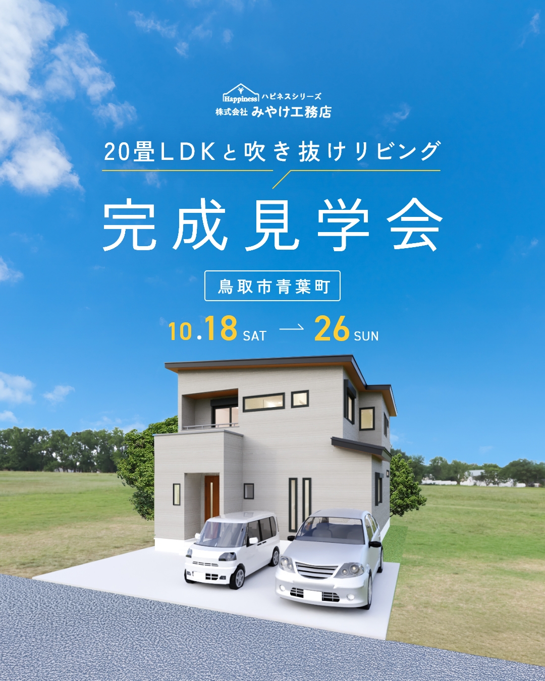 2025年の10/18(土)から10/26(日)に鳥取市青葉町にて、お客様の家・完成見学会を行います!